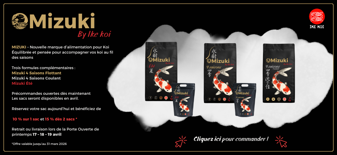 Cliquez ici pour en savoir plus sur les carpes Koï d'Ike Koi, n'hésitez pas à nous contacter au 07 77 00 34 47 ou à nous envoyer un e-mail à ikekoi001@gmail.com si vous êtes intéressé par l'achat de carpes Koï en France.