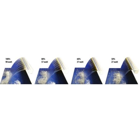 Dans l'exemple des 4 photos, nous avons utilisé un AquaForte O-Plus / DM-10.000 Vario à 4 vitesses de pompe différentes (50/60/80/100%) pour montrer la différence de volume / distance et de consommation d'énergie en cascade.
