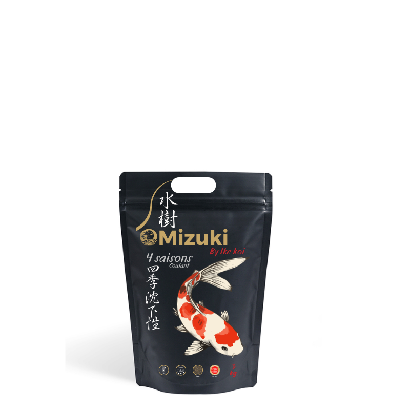 Cette inspiration guide la création de Mizuki 4 Saisons Coulant : un aliment pensé pour accompagner les Koi tout au long de l’année, dans le respect de leur rythme naturel.