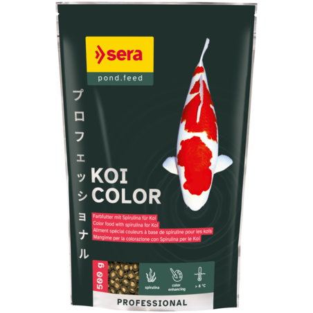 Une alimentation conforme est indispensable pour optimiser les superbes couleurs des koïs. Une teneur adaptée en microalgue spiruline dans l'aliment favorise la saturation et l'intensification des couleurs ainsi qu'une séparation nette des différentes zones de couleurs. Les zones blanches sont éclatantes, sans tirer sur le jaune.