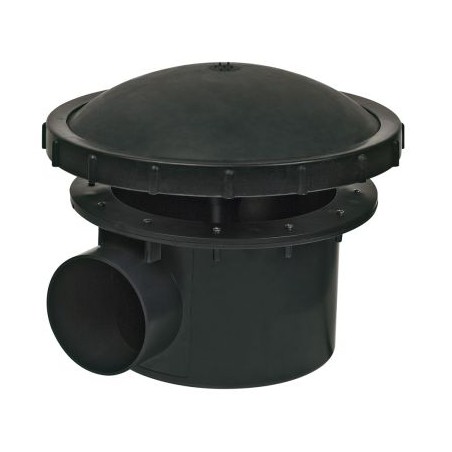 Bonde de fond robuste 110 mm avec sortie excentrique. Doté d'un couvercle en membrane caoutchouc pour une aération et une circulation optimales. Doté d'un embout de flexible 25 mm 90°.
