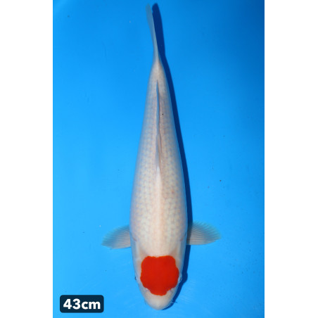 Motif Tancho parfait : rond bien défini, positionné au centre du crâne. Blanc neige : sans taches ni jaunissement, idéal pour mettre en valeur le hi. Qualité Hoshikin : lignée réputée pour la stabilité des couleurs et la croissance harmonieuse. Âge : Nisai (2 ans). Koi au magasin, Livraison disponible.