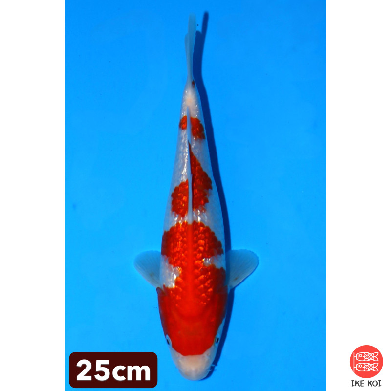 Motif Tancho parfait : rond bien défini, positionné au centre du crâne. Blanc neige : sans taches ni jaunissement, idéal pour mettre en valeur le hi. Qualité Hoshikin : lignée réputée pour la stabilité des couleurs et la croissance harmonieuse. Âge : Nisai (2 ans). Koi au magasin, Livraison disponible. Petit shimi présent sur la pectorale d'où la...