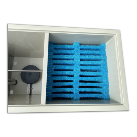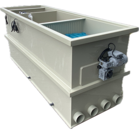 Les biochambres ont une capacité de 400 litres pour le matériau de lit mobile (non fourni) et 5 m² de tapis filtrants japonais sont inclus.