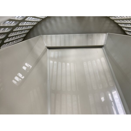 La grille est une grille de 120 microns offrant une surface de contact avec l'eau exceptionnellement élevée, supérieure à 80 % ! L'évacuation se compose d'une large rigole inclinée avec un raccord de 110 mm.