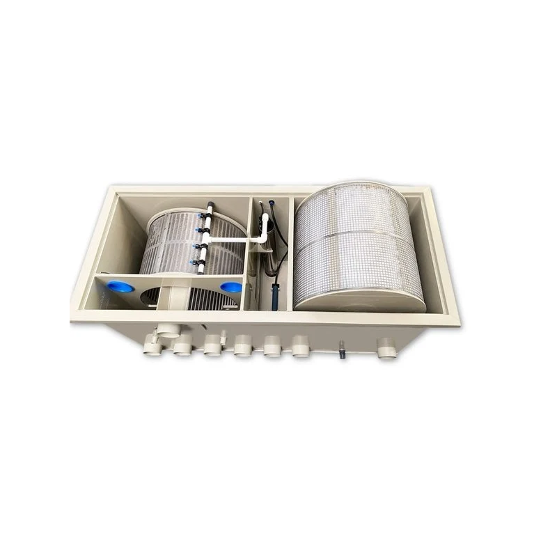 La conception comprend un filtre à tambour intégré avec un tissu tamisant de 70 microns, une chambre biologique supplémentaire de 85 litres et un RBC de 180 litres (contacteur biologique rotatif) rempli d'Helix comme bio-média.