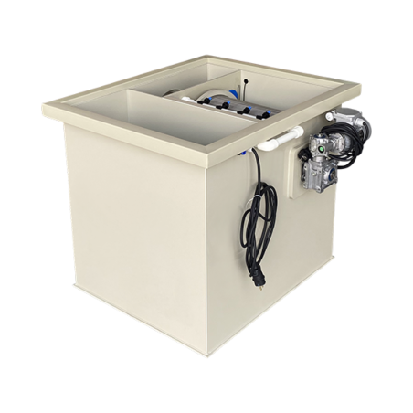 Tous les SuperDrum sont fournis avec un couvercle, une pompe de rinçage et l'électronique de commande. Le matériel UV et de filtration biologique n'est pas inclus.