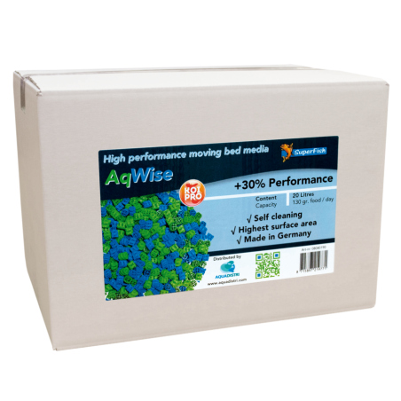 AqWise est fabriqué en Allemagne avec du plastique HDPE de haute qualité, ce qui permet d’atteindre avec précision le niveau de flottabilité voulu; cette flottabilité est d’une importance primordiale pour le bon fonctionnement d’un média de filtration "Floating bed", chaque particule satisfait avec garantie aux exigences de la conception d’AqWise.