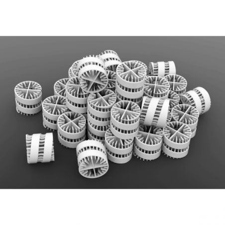 Grâce à sa grande surface protégée, ce support offre une filtration biologique très élevée par rapport aux autres anneaux biologiques.