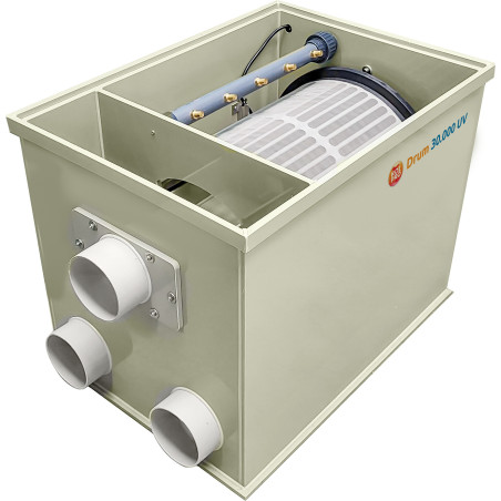 Le Koi Pro Combi Drum 3 est un système de préfiltre et de filtre biologique qui nécessite peu d'entretien. Ce filtre combiné autonettoyant assure une eau saine et claire, sans que l'utilisateur n'ait à effectuer d'entretien quotidien. Disponible en 2 modèles pour une installation en tant que filtre à tambour alimenté par gravité ou par pompage.