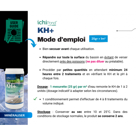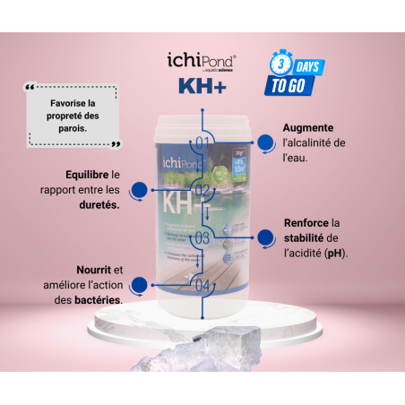 - Kh+ renforce l'effet des bactéries et améliore de ce fait la filtration biologique,