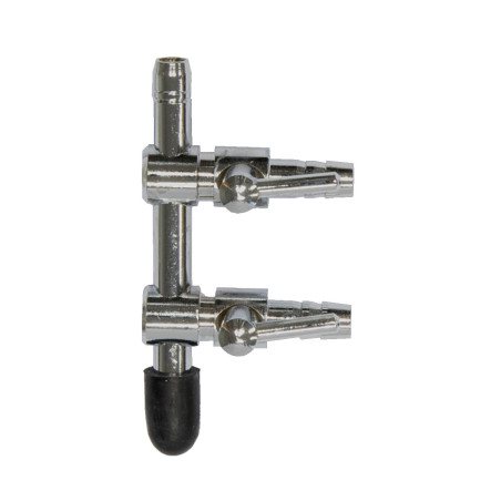 Robinet en acier inoxydable pour tuyau à air 4/6 mm, pour montage sur tube plastique ou PVC.