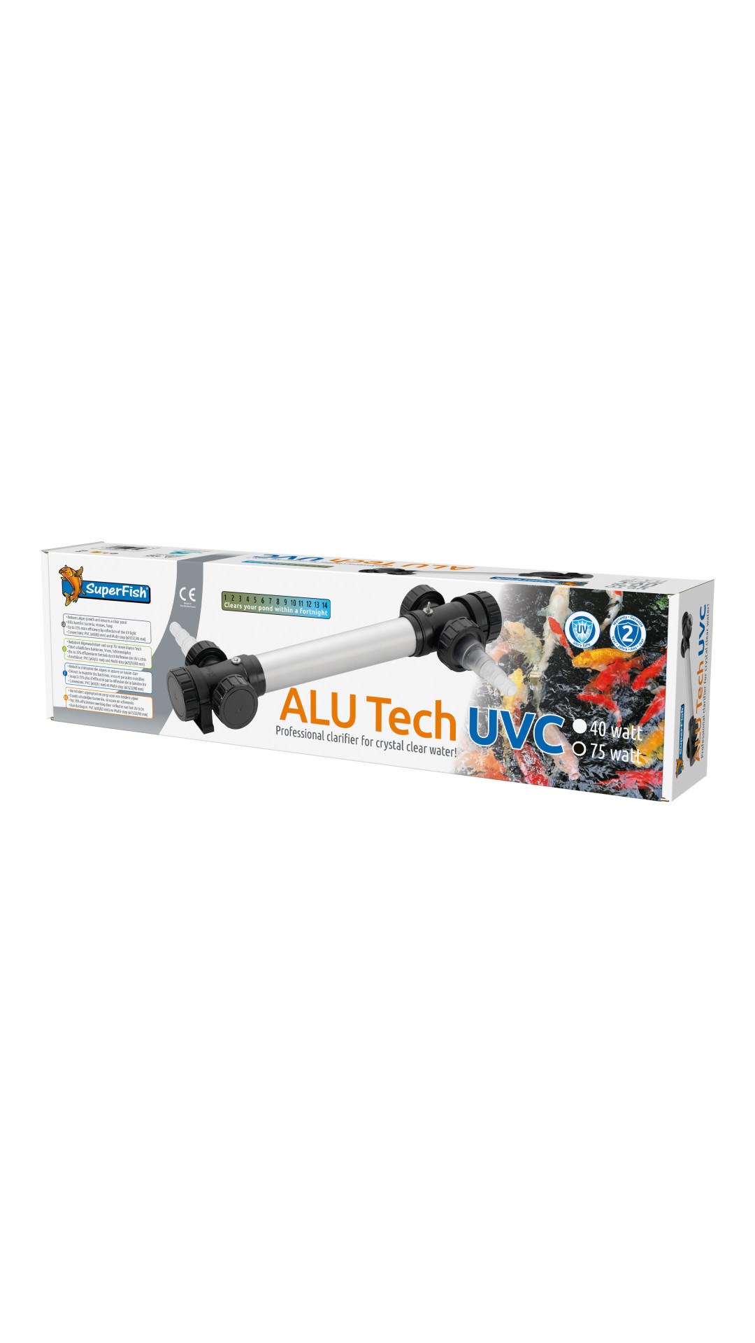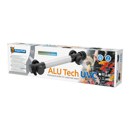 Cet UVC en aluminium offre une qualité et des performances optimales pour les grands bassins et est disponible en 2 versions, l'Alutech UVC 4 Watt pour les bassins jusqu'à 4. litres et 75 Watt pour les bassins jusqu'à 75. litres.
