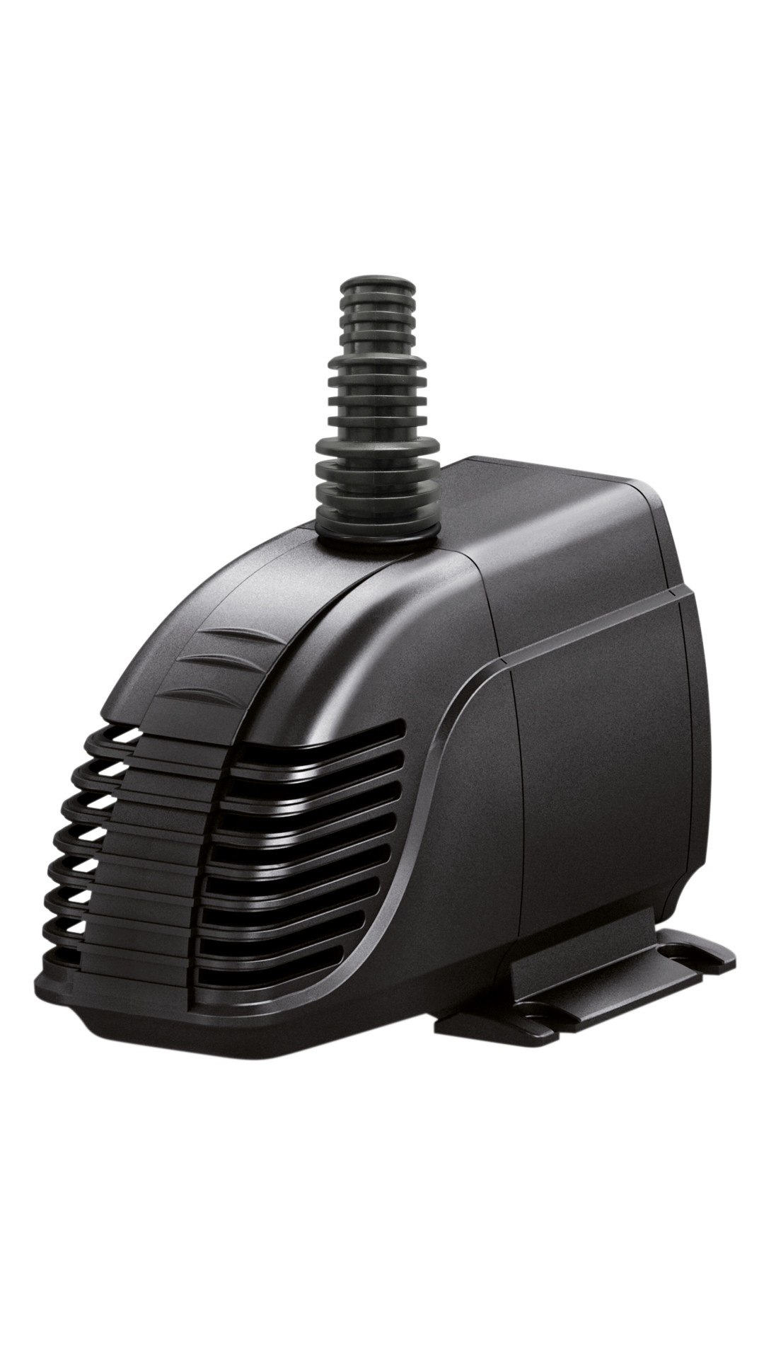 Pond Eco, pompe de bassin électronique économique et compacte avec des raccords polyvalents. Peut être utilisée en fonctionnement à sec et immergé, grâce à sa protection thermique contre le fonctionnement à sec et la surcharge.